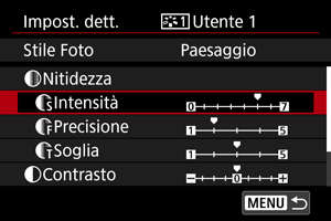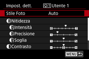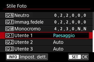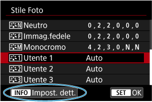 Anche gli Stili foto registrati nella fotocamera utilizzando EOS Utility (software EOS, ) possono essere modificati qui.