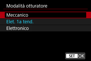 : Funz.otturat.silenzioso] su [Sì], la modalità otturatore viene impostata su [Elettronico].