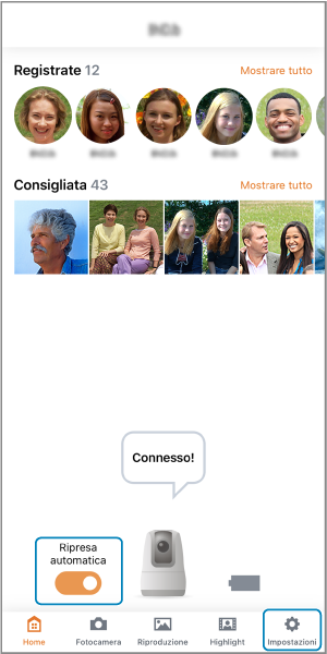Le impostazioni per la ripresa automatica possono essere regolate nell'app.