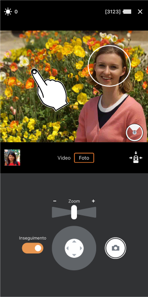 Toccando un soggetto da seguire, il cerchio attorno al suo viso passa da una linea tratteggiata a una linea continua e l'inseguimento passa a quel soggetto.
