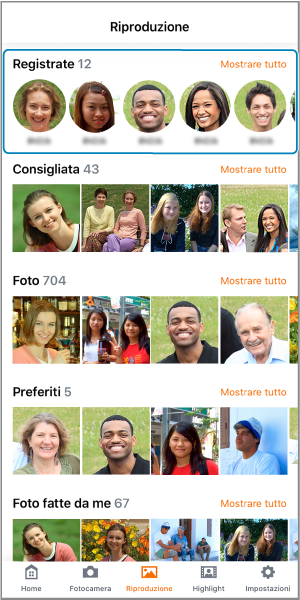 - Potrebbero essere visualizzate immagini in cui appaiono persone diverse dalla persona registrata.