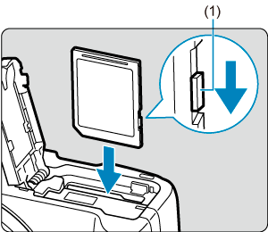- Assicurarsi che l'interruttore di protezione da scrittura della scheda (1) sia rivolto verso l'alto in modo che sia possibile scrivere ed eliminare dati.