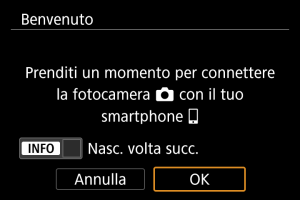 Le istruzioni per la connessione a uno smartphone vengono visualizzate se si sceglie [OK] quando compare la schermata di configurazione ().