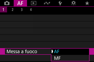- È anche possibile selezionare [AF] o [MF] premendo il tasto