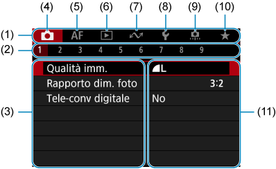 - Per alcune voci di menu oscurate la funzione prevalente potrebbe non essere visualizzata.