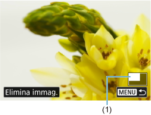 - Viene visualizzata l'immagine ingrandita. La posizione dell'area ingrandita (1) viene visualizzata in basso a destra dello schermo.