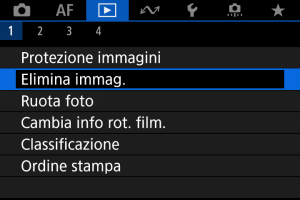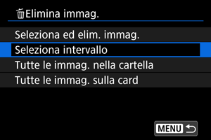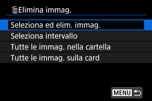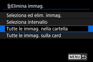 : Elimina immag.], tutte le immagini nella cartella o sulla scheda vengono eliminate.