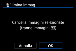 - Non è possibile recuperare un'immagine dopo averla eliminata. Si consiglia di eliminare solo le immagini che non sono più necessarie. Proteggere le immagini importanti per evitare di eliminarle inavvertitamente.