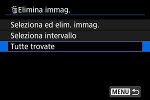 - Selezionando [Tutte trovate], tutte le immagini filtrate in base alle condizioni di ricerca verranno eliminate.