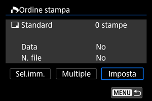 - Non è possibile specificare immagini e filmati RAW/HEIF per la stampa. Le immagini e i filmati RAW/HEIF non vengono impostati per la stampa anche se si specificano tutte le immagini con [Multiple].