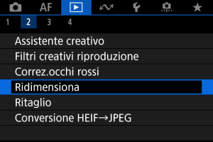 È possibile ridimensionare un'immagine JPEG o HEIF per ridurre il numero di pixel, quindi salvarla come una nuova immagine. Il ridimensionamento è disponibile per le immagini JPEG o HEIF con dimensioni ,