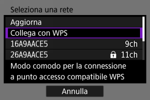 È possibile modificare le impostazioni per le connessioni Wi-Fi.