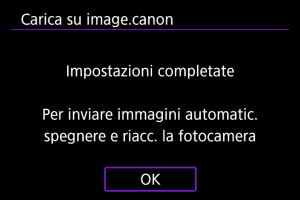 Le immagini vengono caricate automaticamente su image.canon all'avvio della fotocamera (o dalla riattivazione dopo lo spegnimento automatico). Le immagini caricate su image.canon possono essere scaricate su un computer o trasferite ad altri servizi Web.
