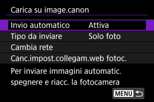 In questa sezione viene descritto come inviare immagini a image.canon.