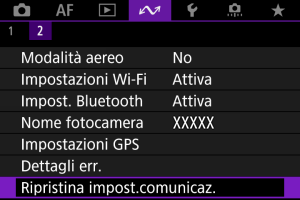 È possibile eliminare tutte le impostazioni della comunicazione wireless. Eliminando le impostazioni della comunicazione wireless si impedisce che le relative informazioni possano essere viste se la fotocamera viene prestata o trasferita ad altri.