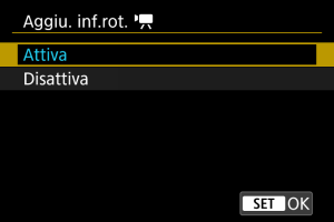 Per i filmati registrati mantenendo la fotocamera in verticale, è possibile aggiungere automaticamente informazioni sull'orientamento per consentire la riproduzione nello stesso orientamento su smartphone o altri dispositivi.