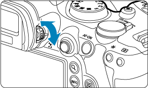 - Ruotare la manopola verso sinistra o destra in modo che la visualizzazione del mirino appaia nitida.