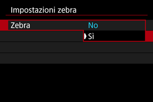 : Impostazioni zebra].