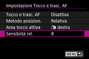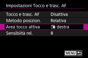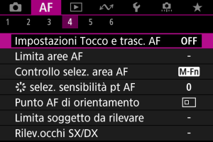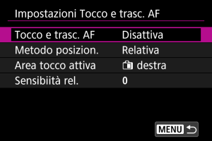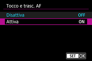 Il punto AF si sposta sulla posizione toccata o trascinata sullo schermo.