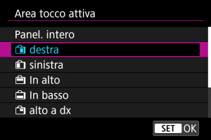 È possibile specificare l'area dello schermo utilizzata per le operazioni di tocco e trascinamento.