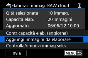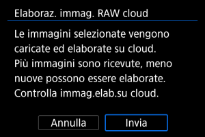 Per l'elaborazione di immagini RAW sul cloud è necessario un abbonamento a pagamento. Per maggiori informazioni sull'abbonamento, visitare il sito Web image.canon.