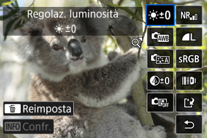 - Per ripristinare le impostazioni dell'immagine al momento dello scatto, premere il pulsante