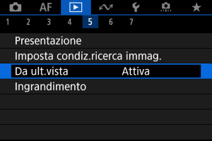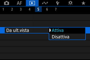 - [Attiva]: la riproduzione riprende dall'ultima immagine visualizzata (tranne quando lo scatto è stato appena terminato).