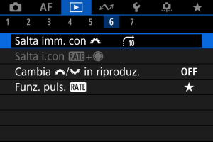 - Con l'impostazione [Salta il numero specificato di immagini] è possibile ruotare la ghiera