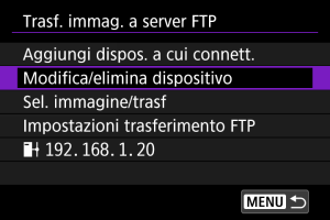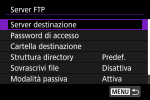 - I seguenti sono elementi non descritti in Collegamento della fotocamera a un server FTP.