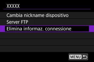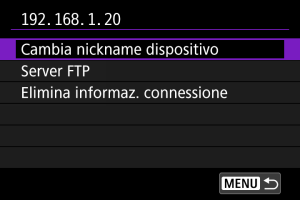 È possibile modificare il nickname dei dispositivi a cui si collega la fotocamera.