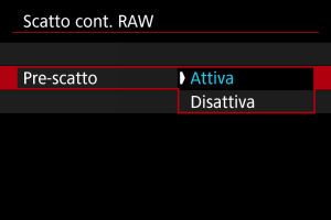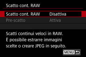 : Scatto cont. RAW] ritorna a [Disattiva] quando l'interruttore di accensione viene portato su