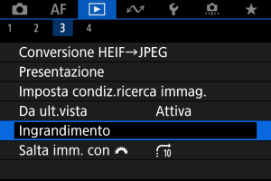 Viene utilizzata la posizione impostata in [Posiz. ingrandita] quando si visualizzano immagini consecutive nella visualizzazione ingrandita.