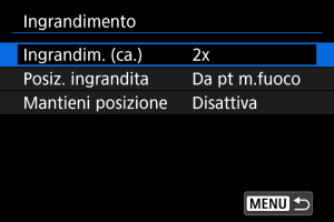 La visualizzazione ingrandita inizia dal punto AF messo a fuoco. Se la foto viene scattata con la messa a fuoco manuale, la visualizzazione ingrandita inizia dal centro dello schermo.