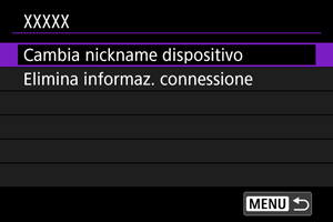 È possibile modificare il nickname dei dispositivi a cui si collega la fotocamera.