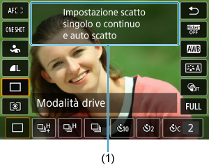 Una breve descrizione delle funzioni e degli elementi può essere visualizzata quando si utilizza Quick Control.