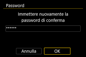 , oppure quando la videocamera riprende a funzionare dopo lo spegnimento automatico. Immettere la password impostata.