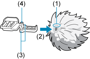 - Se il piumino della protezione antivento si stacca, rimontarlo come indicato di seguito.