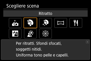 Utilizzare la modalità [] (Ritratto) per dare un effetto sfocato allo sfondo e mettere in risalto la persona di cui si sta scattando una foto. Inoltre, rende i toni dell'incarnato e l'aspetto dei capelli più sfumati.