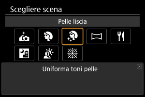 - Se l'effetto pelle liscia è troppo forte, le immagini potrebbero non apparire come previsto. Effettuare scatti di prova in anticipo e controllare i risultati.