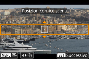- Per fare in modo che la cornice della scena (visualizzata in arancione) possa essere spostata, premere il pulsante