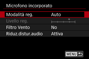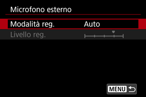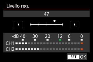 È possibile regolare manualmente il livello di registrazione dell'audio secondo necessità. Regolare il livello in [Livello reg.].