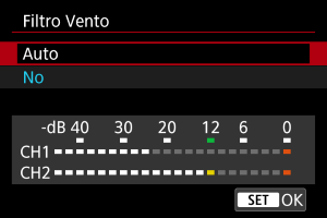 Disponibile quando si usa il microfono integrato o microfoni esterni da montare su slitta multifunzione che sono compatibili con i filtri vento.