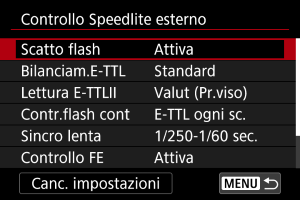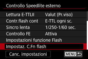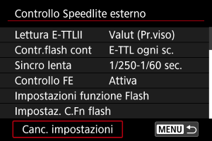 - Selezionare [Cancella impostazioni flash] o [Canc. tutti C.Fn Speedlite].