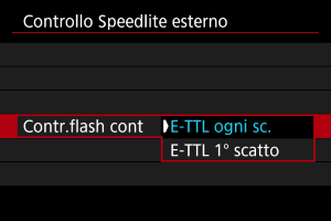 - Impostare su [E-TTL ogni sc.] per eseguire la lettura flash per ogni scatto.