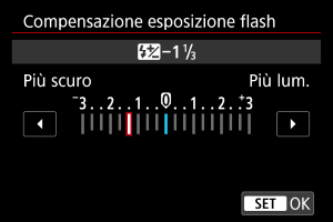 È possibile impostare l'aspetto preferito (bilanciamento) per gli scatti con il flash. Questa impostazione consente di regolare il rapporto tra la luce ambiente e la potenza luminosa dello Speedlite.
