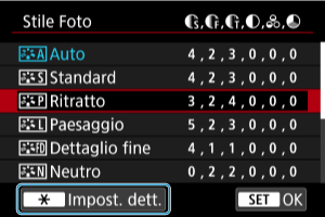 - Selezionando [Imp. predef.] al passo 3, è possibile ripristinare le impostazioni dei parametri del relativo Stile foto ai valori predefiniti.