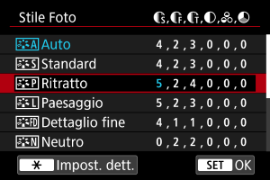 - Selezionare lo Stile foto da regolare, quindi premere il pulsante