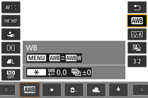 L'impostazione del bilanciamento del bianco (WB, White Balance) consente di rendere nitido il colore delle aree bianche. Generalmente, l'impostazione [] Auto (Priorità ambiente) o [