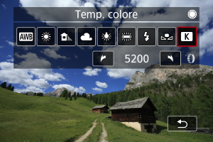 È possibile impostare un valore che rappresenta la temperatura del colore del bilanciamento del bianco.