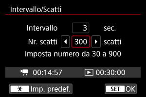 - Per una maggiore libertà quando si imposta manualmente l'intervallo di scatto e il numero di scatti, selezionare [Personal.].